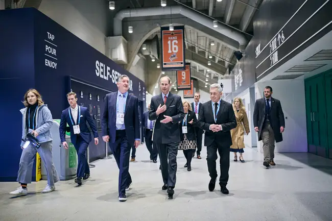 دوک ادینبورگ، در حال دیدار با اسکیت‌بازان تیم بریتانیا در مسابقات قهرمانی اسکیت نمایشی اروپا ۲۰۲۶ فدراسیون بین‌المللی اسکیت (ISU) در شفیلد، انگلستان. © ISU